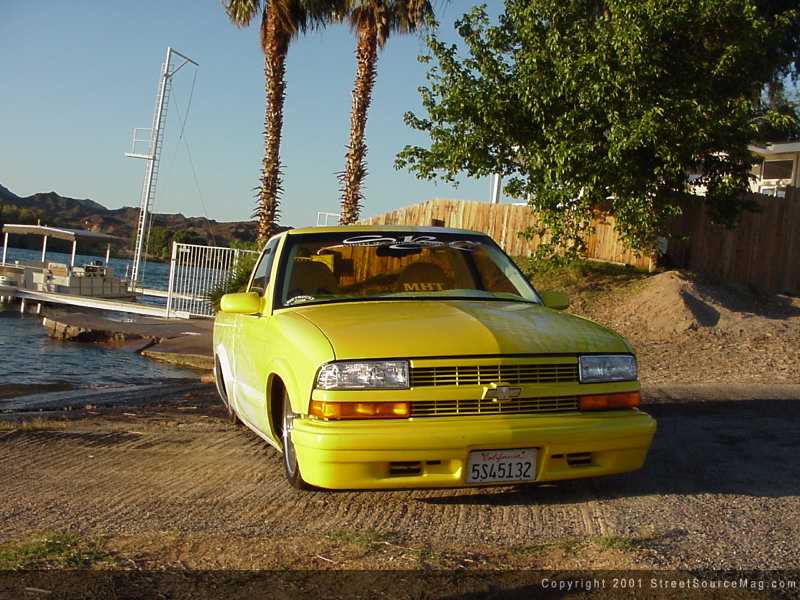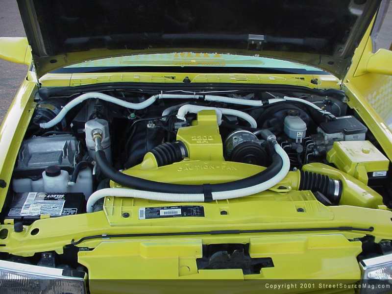 The interior is also equipped with a Grant steering wheel, which matches the Corbeau Racing buckets that are wrapped with yellow leather. The rest of the interior panels, including the headliner, were wrapped with white leather with yellow graphics to match the truck exterior. To go with the Racing seats, Jon added RCI 5 point racing harnesses. All interior mods where also performed by SBC.
