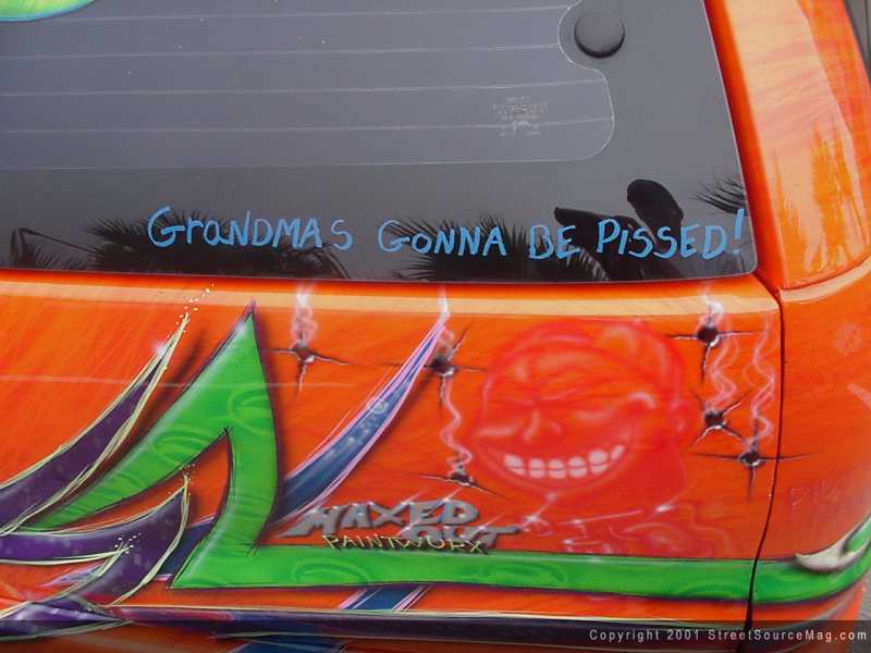 Not done yet, Max would then apply many different airbrushed skulls and what not bringing the entire paint job together. Maxed out Paintwurx, which is Max's business, is responsible for all of the body and paint applied to this eye-popping monster.