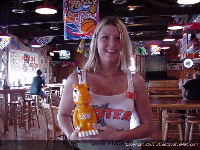 Chapter Three "Jacks first show"The date: 6/16/01 Jacks first show would consist of much enthusiasm as he scooped out every hot East coast girl in the grounds looking for someone to help manage his time effectively. Spotting one hot model, Jack proceeds to put his pimp on getting plenty of photo's to add to this here fine diary. Shortly afterwords, it was time to hit the pool where Jack was said to be the laugh of the party. Unfortunetly our cameras where all put away at this point so you'll have to trust Jack when he says the arm floaty was a relief keeping him from going underwater in the pool and spelling his refreshing beverage within. As the show came to an end, Jack persisted that we hit Hooters for his first ever apperance with the fine ladies which work there.Chapter Four "Jack invades Hooters!"The date: 6/17/01 First off, Jack would like to thank the nice manager of Hooters for allowing him to occupy his waitress' time while on the job.