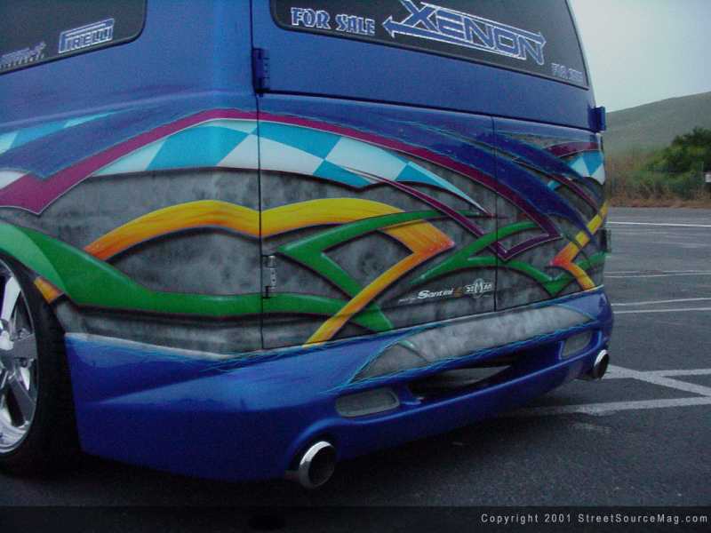 The rear hatch was then shaved and smoothed out leaving neither rear hatch handle nor a box for the license plate to reside in. Leonardo Auto Body of Santa Ana is responsible for nearly all of the bodywork found to the Ballistics van.