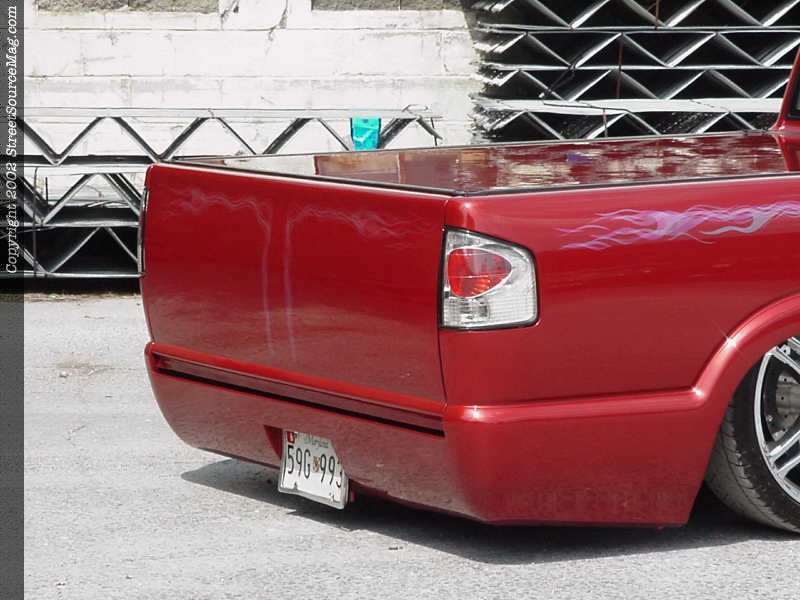 With the body now at a satisfying stage in the game, John dropped his transforming S-10 off to Bud Davis of Davidsonville, MD. While in Bud's hands, the final prep work would be done before laying down the Dupont chrome base Inferno Red paint. Once laid out, Bud would then start laying down 4 different layers of Ghost flames that can be found through out the exterior in shades of purple, blue and silver.