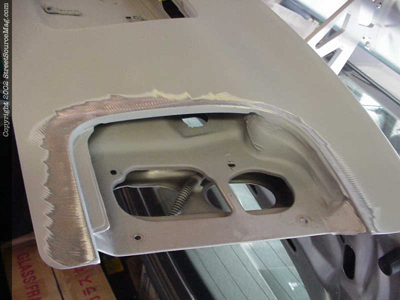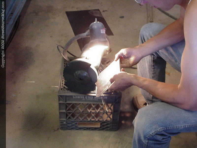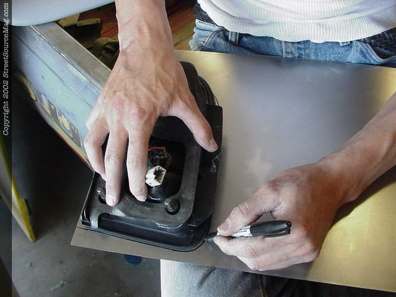 2. After the lights are removed you will then need to grind down the entire surrounding area where the light was mounted to ensure a good weld once you are ready to weld in your taillight filler. 3. Using the taillight itself, we get an outline on sheet metal so that we have a starting point for our fillers. After cut out, John then takes the filler piece to the grinding wheel to get ride of high spots ensuring the tightest fit possible. Since the trunk lid has a nice curve in the bodyline, make sure to get really thin-gauged metal.