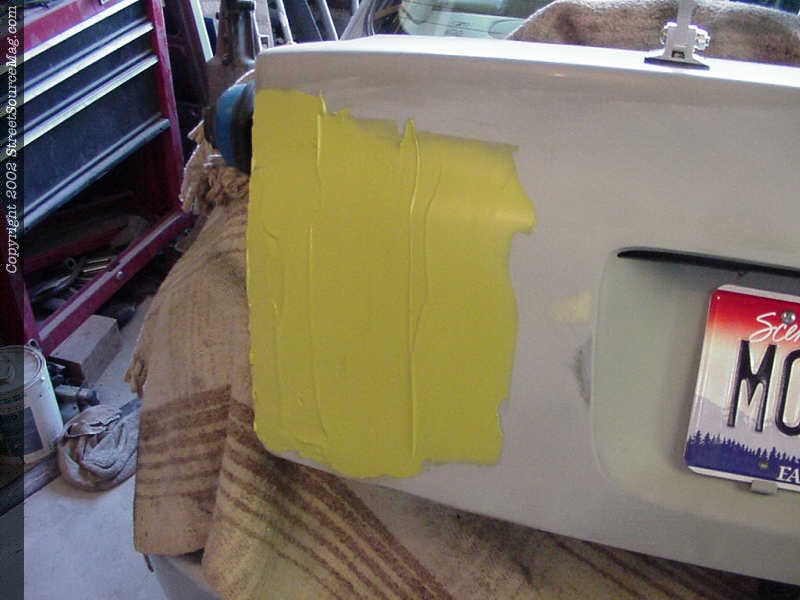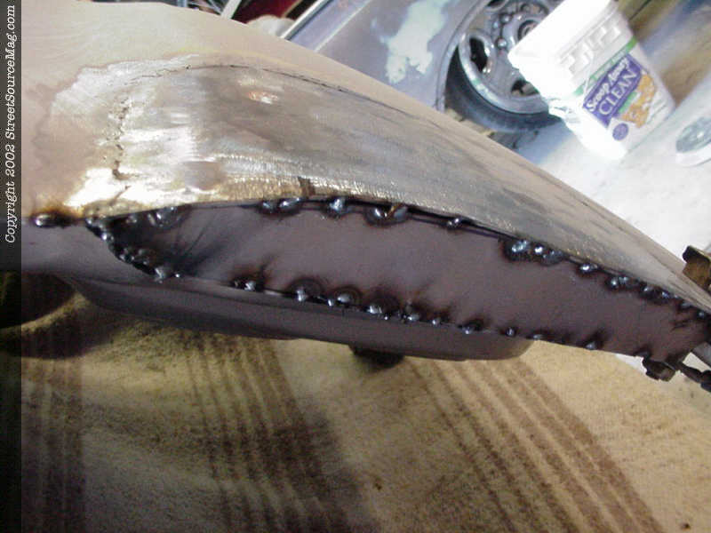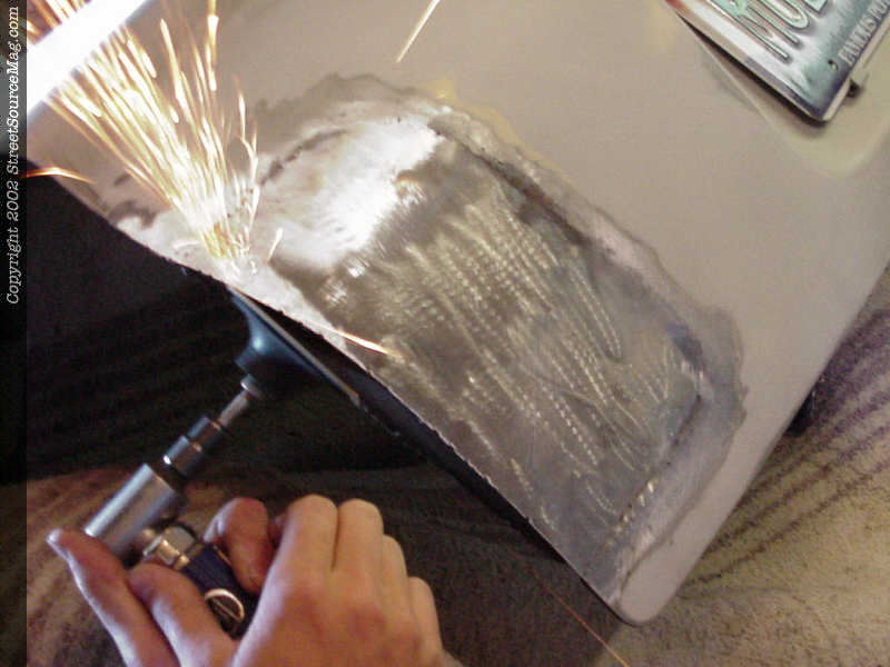 12. Once the fillers are complete and tacked in they are now grounded down in preparation for finish work. 13. To keep everything smooth and the body work clean, a thin layer of bond is needed over the filler and grinded areas. 14. Once the bondo dries it is then time to sand it down and make sure you have no high or low spots.