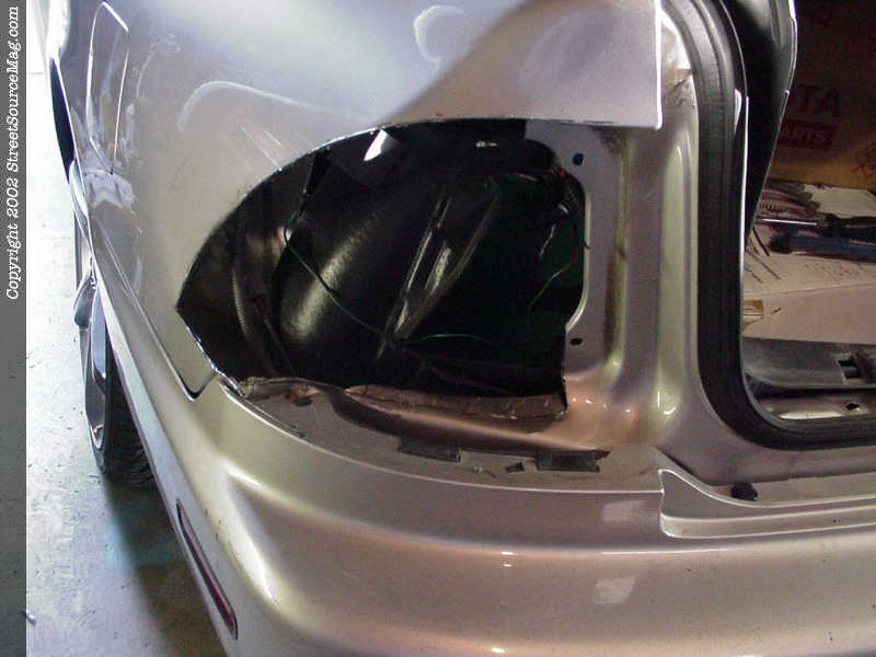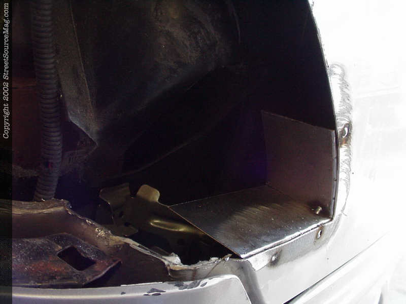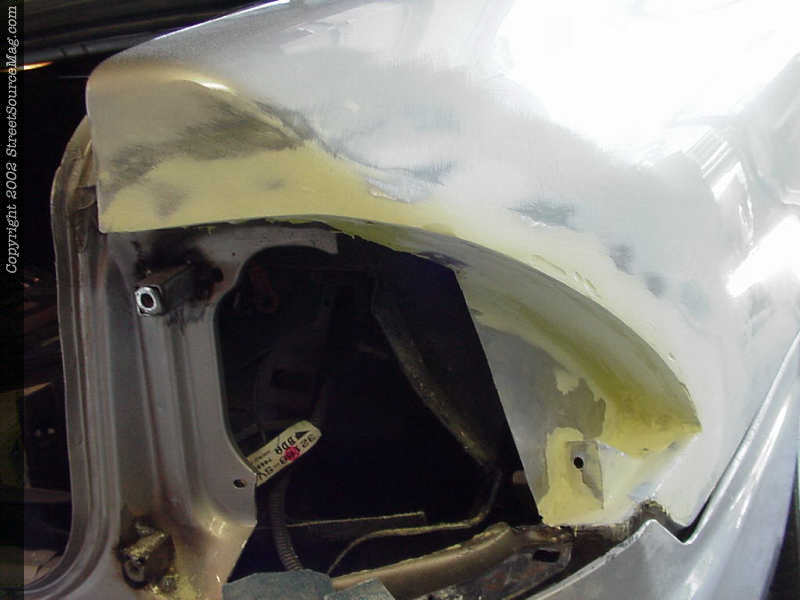 4. Once everything was cut out the next step was to clean up the cut and grind away the paint preparing for welding. Once cleaned up John then built some inner pods that would be welded in making a cup for the taillights to sit in along with strengthening the quarter panel.