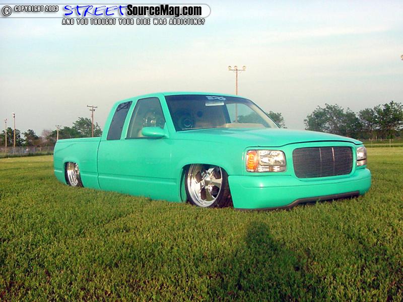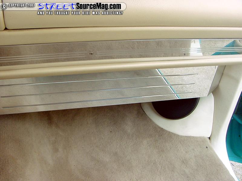 Moving to the interior this male stripper wanted something classy but eye catching. Mitch let mikes trim shop play with this part of the truck. While at Mike's they wrapped every piece of plastic in Cadillac cappuccino cream leather.  Working on the interior Mike took the factory seats and chopped them down for a more low profile look.