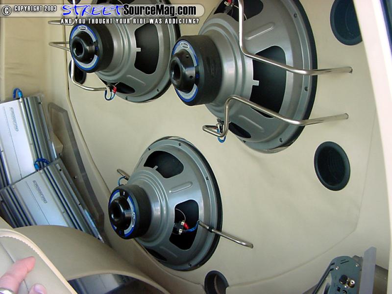 For sounds Mitch had to have something loud and obnoxious so he let the guys at performance audio take the reigns of this pimp wagon and install something even a midget would love. In the ext cab of Mitch's truck performance installed 2 150.2 TEK series amps and 6 crossfire p-1 15" subwoofers.   Adding to all this performance also installed 4 6-½-crossfire mids, 4 1" tweeters and for the brain unit Mitch went with a clarion in dash CD player.