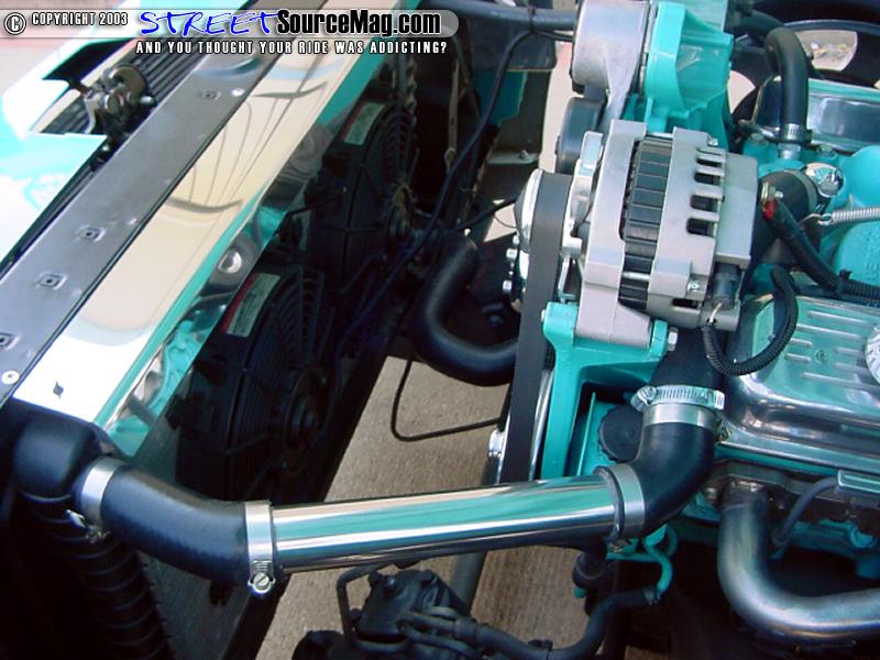 While the engine was out Mitch went through and added all kinds of goodies to the inside of the block to beef up this bucket. Along with all the horsepower parts Mitch didn't forget to add the dress up kit to this newly born engine.   Peety likes everything to be nice and clean so to do this Mitch and his crew of urban commandoes went in and cleaned up every bit of wiring possible and hid everything to give this engine a topnotch show quality appearance.