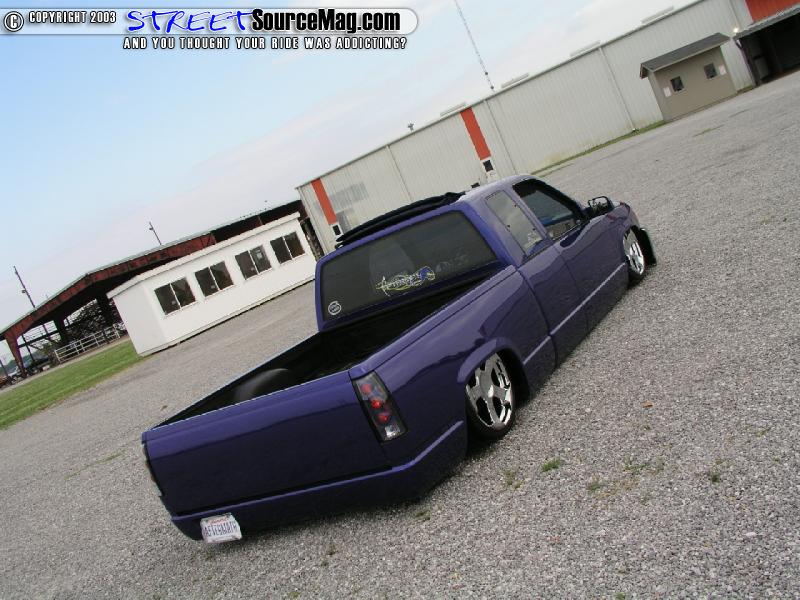 Once the body of the truck was straight and clean it was time for Brent to lay down the shiny stuff. The paint of choice was a Dupont Royal Sapphire Pearl Metallic that truly brings the Cajun Caddy to life.  Once the paint was dry Brent buffed her to a shine and added a set of late model Chevy mirrors that were painted to match and then took apart a set of Euroclear taillights and spayed the insides to match the truck. Last but not least a StreetBeat sliding Rag was installed into the roofline of the Caddy.