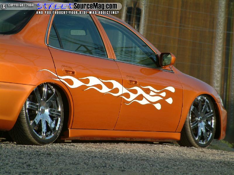With the body now smoothed out and shaved Tanya would have Jason Knauff of Kravits Kustoms, Spokane, WA lay down the new PPG Lemans sunset pearl paint. Not satisfied with the single color paint, Tanya would have Jason through down his skills on some white with orange pearl flames through the doors, hood and trunk lid.