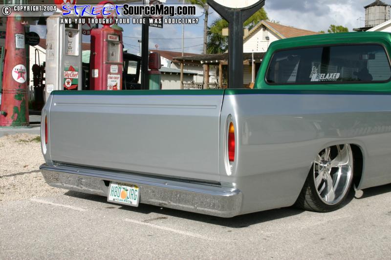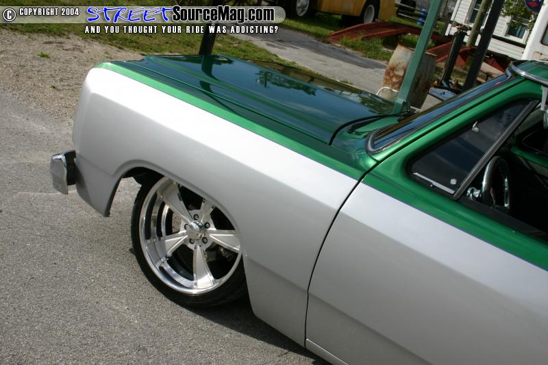 Getting things moving, the rear frame rails would be notched over the rear end with 1/8th plate by Tommy’s of Vero Beach. A set of 33-inch Chassis Engineering ladder bars with panhard bar would then be installed to help bring the rear down and help keep things stable.  For adjustability, 2600lb Firestone bags front and rear would be installed along with the proper valves, compressors and air tank. Up front 2-inch DJM drop spindles would help bring things to a lower level. To help leave more room upfront for the 20-inch Intro Vista wheels, the battery would be relocated into the bed. He’d have 245/35’s Nitto Extreme 555’s upfront while the rear Intro’s would be wrapped in 275/30’s.