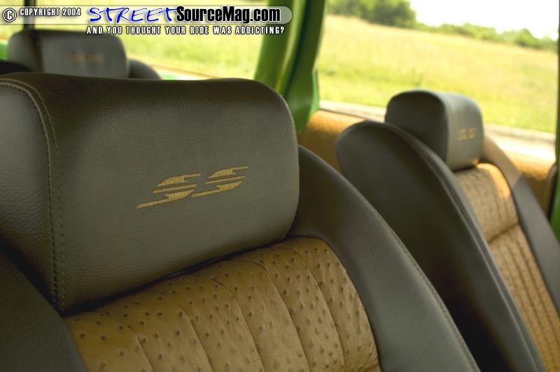 For the seats they switched out to four Impalla SS buckets all of which were covered in Ostrich and brown vinyl. The door panels were also given the same treatment along with some billet knobs to go along with the Trenz billet steering wheel and rear view mirror.
