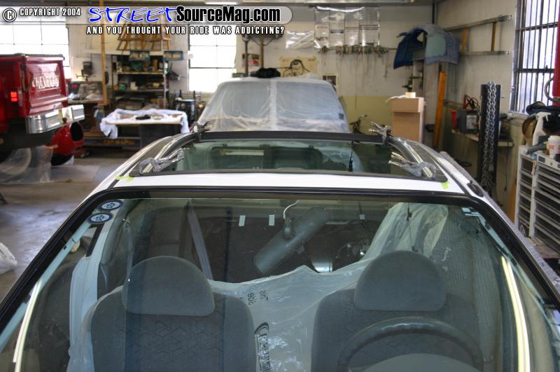 Some people say they have used sawzalls, nibblers, power metal shears, and cutting discs. Whatever you choose to do remember to cover your interior so that the metal shavings and sparks don’t hit anything that you don’t want them to. Especially your windows! After cutting the center section of the roof out remove the piece from the car and begin fitting your frame assembly. Because of the angle of roofs in most cars you will have to cut stress reliefs in the frame assembly to be able to bend it to fit the roof.