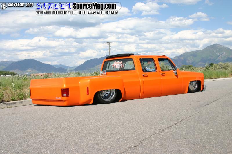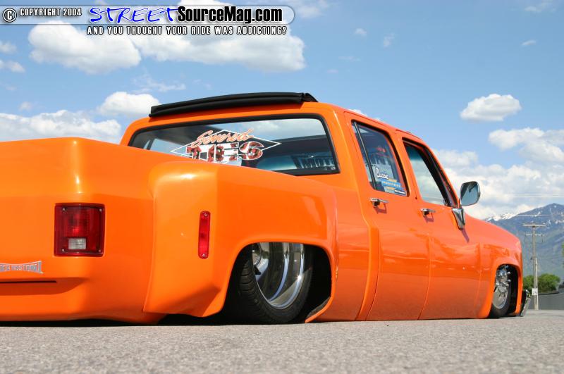 Like many others have done and will do in the future Ron decided to hook up with the guys over at Trick Kustomz. After re working the body drop it totaled a whopping 4 ½” still using the stock floor. While it was there Trick Kustoms also shaved the keyholes, tailgate, sectioned and stretched the rear fenders out, built the bed floor, shaved both the gas doors, and dropped the motor 4” to clear the hood.