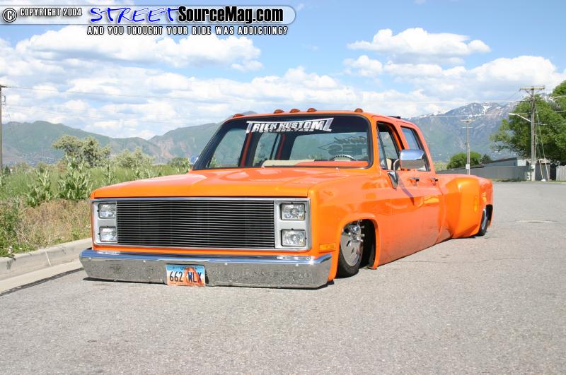Ron’s truck is bagged on all four corners with firestone airbags and Monroe shocks. Belltech drop spindles were also installed by Trick Kustoms as well as the 3-link, and 50-gallon aluminum fuel cell under the bed. Rolling on a set of one-off Brent Wheelz Diamonds keeps Ron’s dually at the top of its class. And the Pirelli tires keep Brentz Wheelz from making another set of Diamonds for Ron.