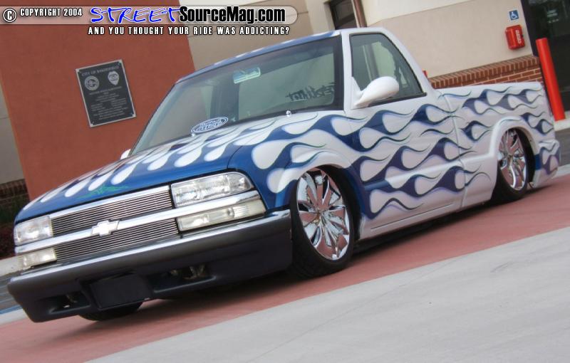 His 2000 S10 has grown in the years that he has had it. When Matt first picked up the truck it was treated to a nice set of Centerline 17 inch wheels and was hammered because as you may know, Bakersfield is quite the mini truck town and stock just does not cut it. Yet that wasn’t enough, then it was time to bag the truck, so he went and saw Kent at Krazy Kustoms in Bakersfield and they reworked the suspension using a reverse 4-link, so his truck could lay frame.