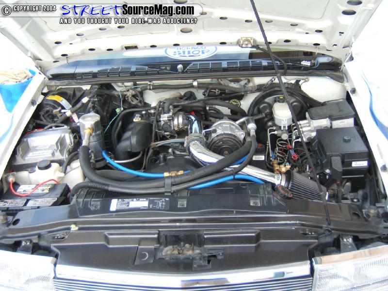 But, before he threw the seats back in the truck, he added a little flame stitching to tie in the exterior to the interior. Matt also had some of the interior pieces such as parts of the door panels, and dash painted by K-Daddyz to match the white of the exterior. Then Matt added on a Colorado Customs “Fire” Billet Steering wheel for an extra bit of flair and billet shifter and window cranks to add a little more old school to the project. The last portion of Matt’s truck that needed to be touched was under the hood. Matt started by adding a Chrome Intake along with a nice set of Chrome headers. Jacobs Electronics plug wires and Flowmaster Cat-back exhaust also helps little Matt’s 4 cylinder get up to speed a littler quicker.