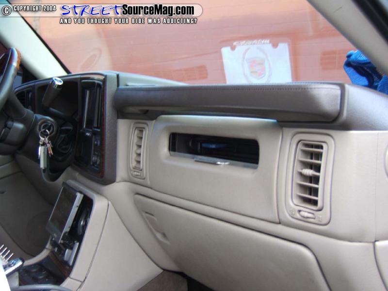 Less than a month passes by and Mike is already on his way to see his boy Doug at Paradyme Car Audio in Sacramento, Ca. where the Doug’s team of installers took redoing the Caddy’s stereo system. First thing added was 8 inch in dash Pioneer screen and head unit along with 7-½ inch flip down screen. Doug’s team then installed a Playstation 2 system into a custom console where Mike’s passenger airbag use to be.