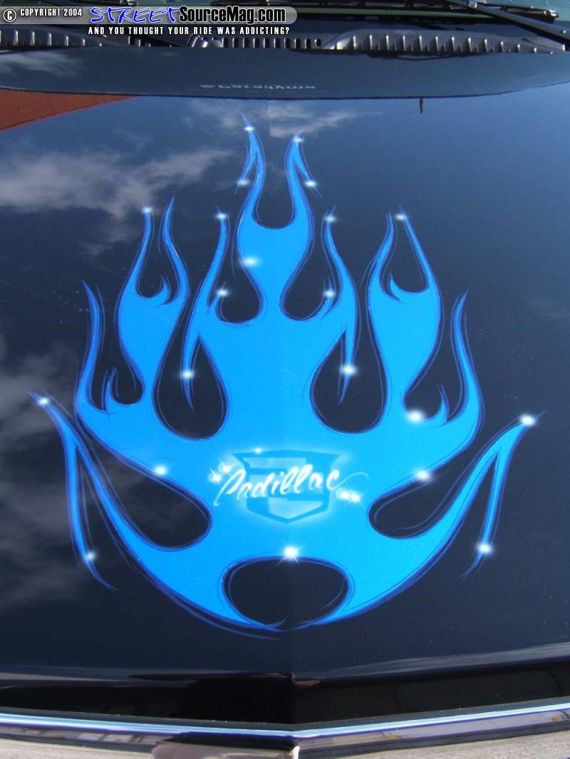 James, first two toned the truck by adding Blue to the top half and then used a silver flame to break up the two tone and add a little flair. But masking and laying down paint is not what Cashman is known for, it’s his airbrushing and he sure did a number adding Caddy logos all over Mike’s ride. It only took James 7 weeks to work his magic, and then the Escalade was loaded on the only trailer it has been on for a show and taken to Vegas for the SEMA show.