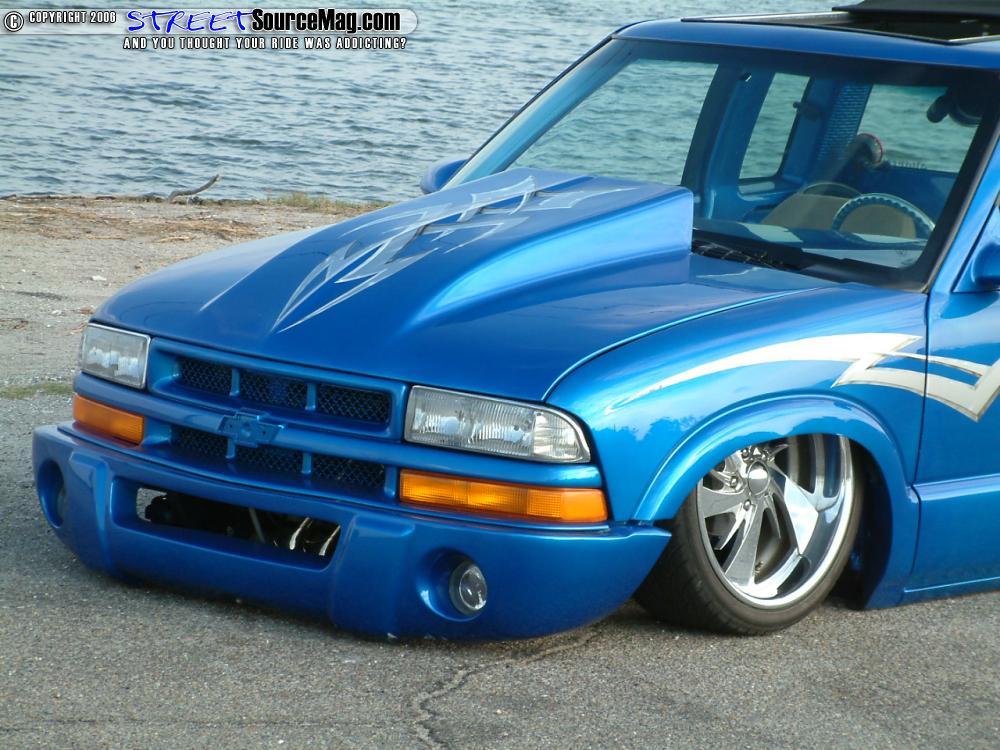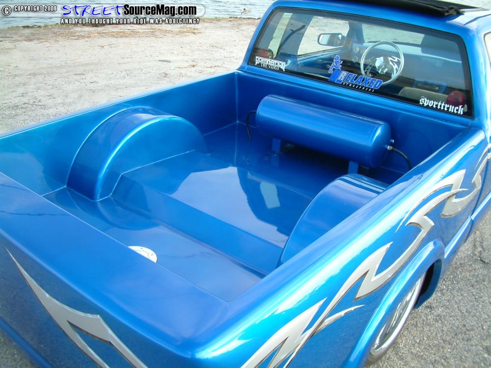 A set of ’98 S10 headlights would be mounted upfront while the taillights, tailgate, and emblems would all be shaved. Adding the finished touches Jason would set the doors suicide style and install a ragtop into the roof along with sheet metal and molding the entire inside bed walls and floor.
