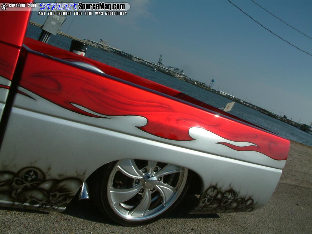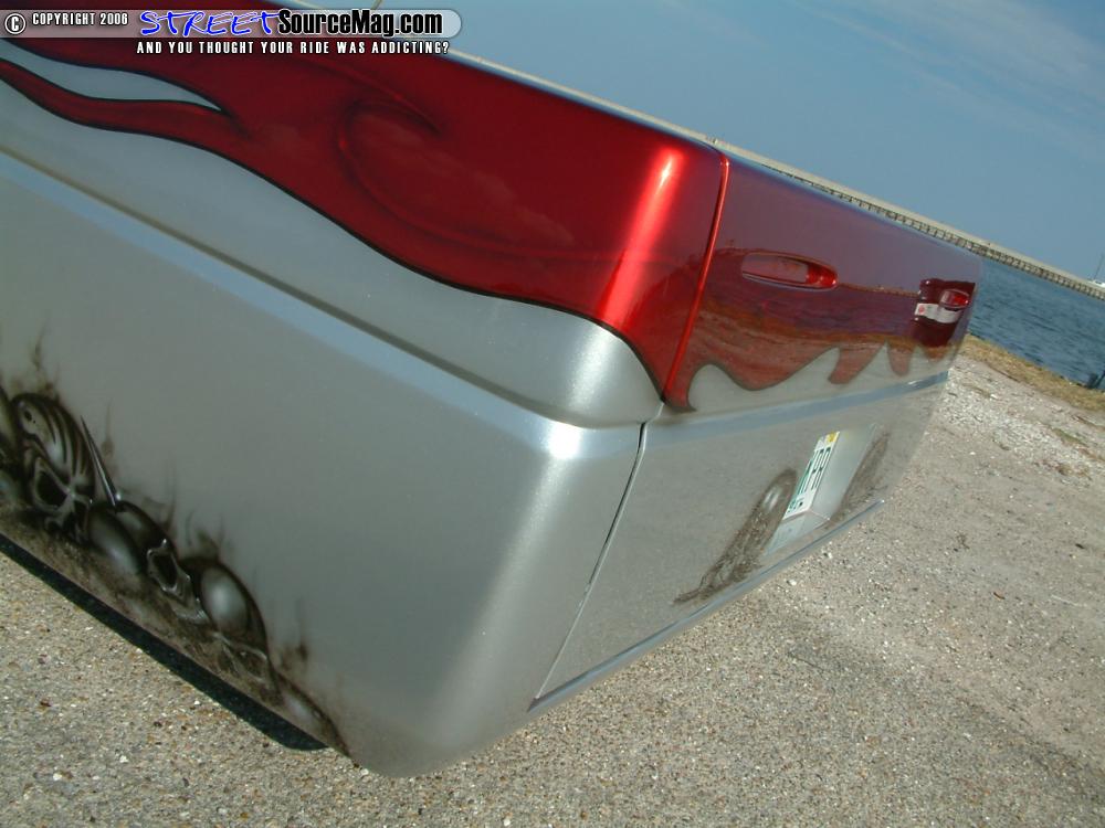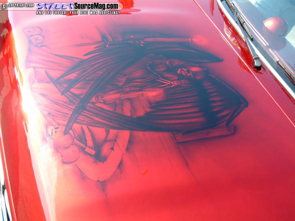 After having the body worked over and prepped David would then lay down a Candy Apple Red base with an Orion silver HOK with airbrushed skulls to finish things off.
