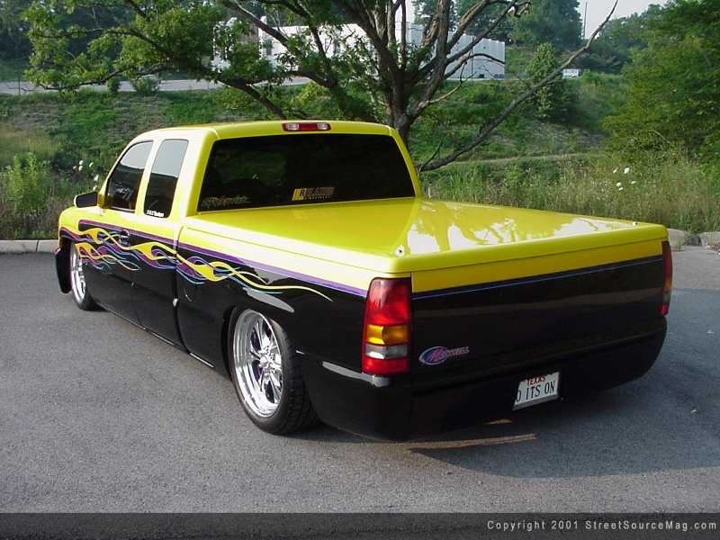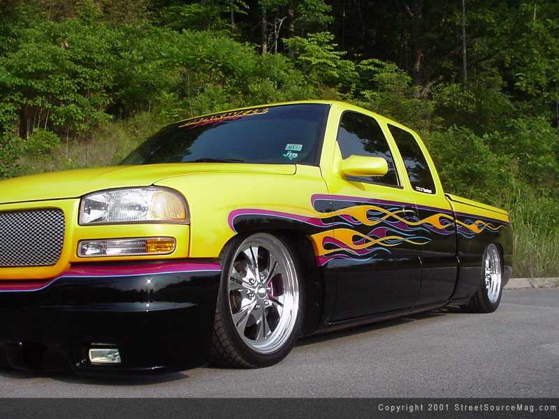 For the last 16 years, Pat has been living out part of his probation sentence – to build show trucks that turn heads everywhere. Not only does the ride Pat build need to win shows, but it has to be good enough to be a rolling business card for his graphic arts business, Maxwell Designs. In late 1999, Pat picked up a brand new Sierra. Six months and $20,000 later, people would come to recognize Pat at every event he attends.