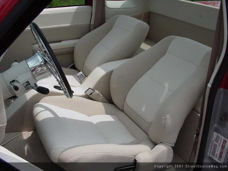 To roll on, Keith went total street rod with a set of Billet Specialties Phantoms. The 17” wheels are wrapped in 215-40-17 BFG tires front and rear. Moving to the interior, Keith contacted Ron Dressler of Cocalamus, PA to transform the stock interior into something show worthy. A set of Acura Integra seats were first covered in tan tweed. Then, everything in the cab was covered in either tan tweed or tan leather. A Billet Specialties steering wheel was bolt on and a massive stereo consisting of an Alpine headunit and amps was installed pushing Soundstream 10” subs. The owner was responsible for the stereo work.