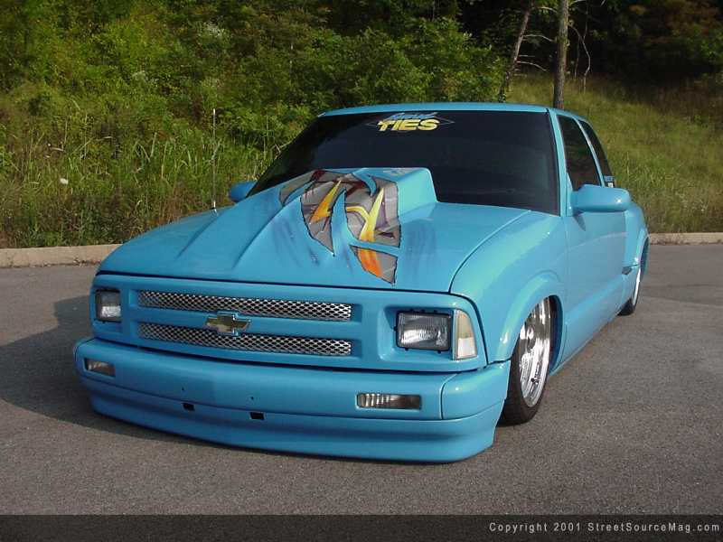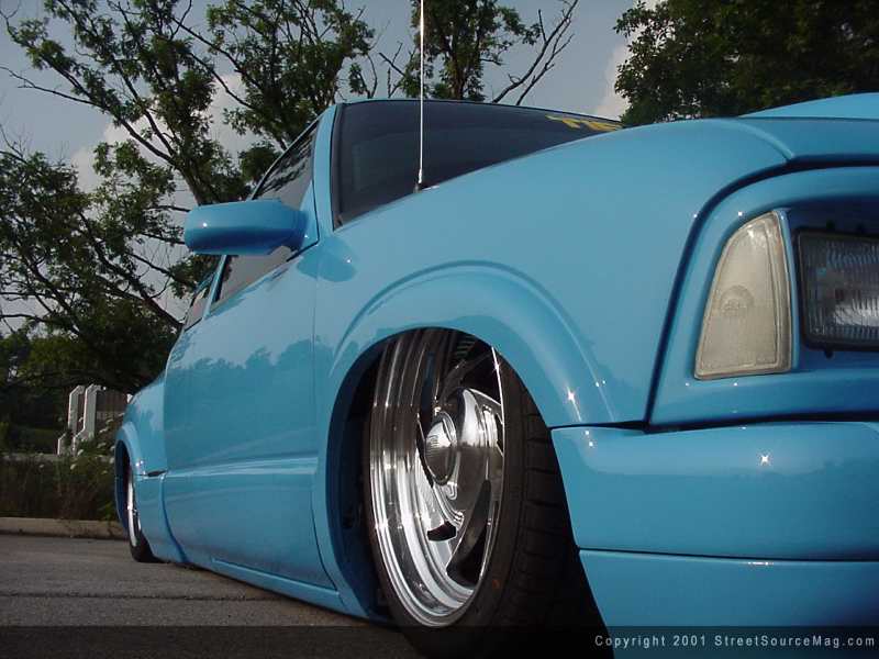 What started out, as a normal daily driver truck would soon turn into Korey’s next big project. You see, a telephone pole decided to jump out in from of Korey and damage his new truck. Since it was already damaged, Korey decided it was time, as before, to do some cutting. And that’s what he did. Starting with the frame, Korey needed to make room for the new frame laying stance he was looking for. In the rear, a big monster notch was performed. Korey removed most of the springs from the pack and left it mono springed. He then welded in new airbag mounts to get the rear off the ground and over bumps. Factory shocks smooth things out in the back. Up front, Bell Tech drop spindles were installed along with a Red’s hydraulic setup for instant up or down when Korey needed it. Laying frame was good, but knowing Korey and his previous rides, laying frame wasn’t going to cut it. So, Korey body dropped his S-10 four inches to lay it all the way down. Sitting at a new height level, it was time to start massaging the outside to make it more presentable.