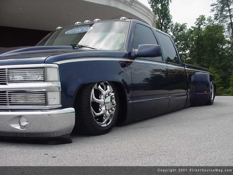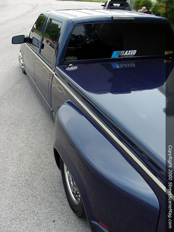 At an all time low, Nelson just couldn’t leave well enough alone. Laying frame was nice, but laying body would be better. So Nelson again dropped his dually off to the pros at KUSTOMWERKS. Eric and Matt went back to work on Nelson’s dually by channeling the body a total of 3 5/8”. Nelson was the undisputed lowest vehicle in his town now.  Moving to the exterior of the dually, Nelson new something had to be done to keep the outside of the truck head turning as his new and improved stance.