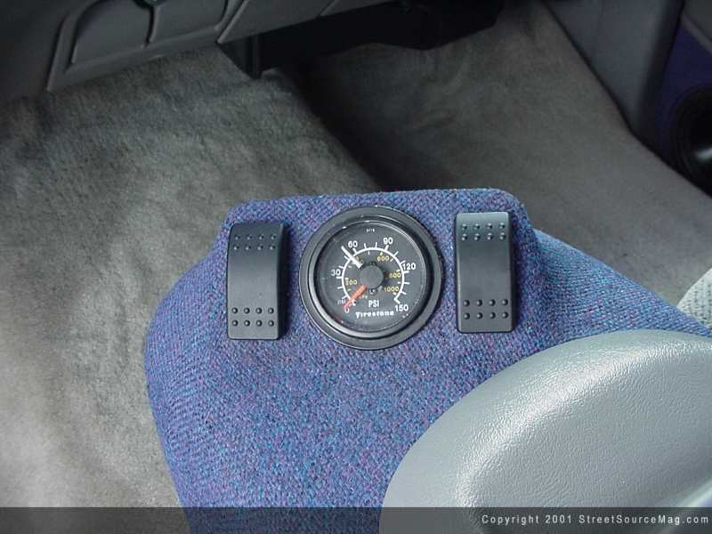 | Built into the custom center console are the padels to control the ride height on the fly. |