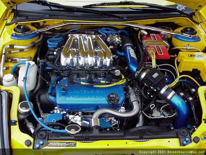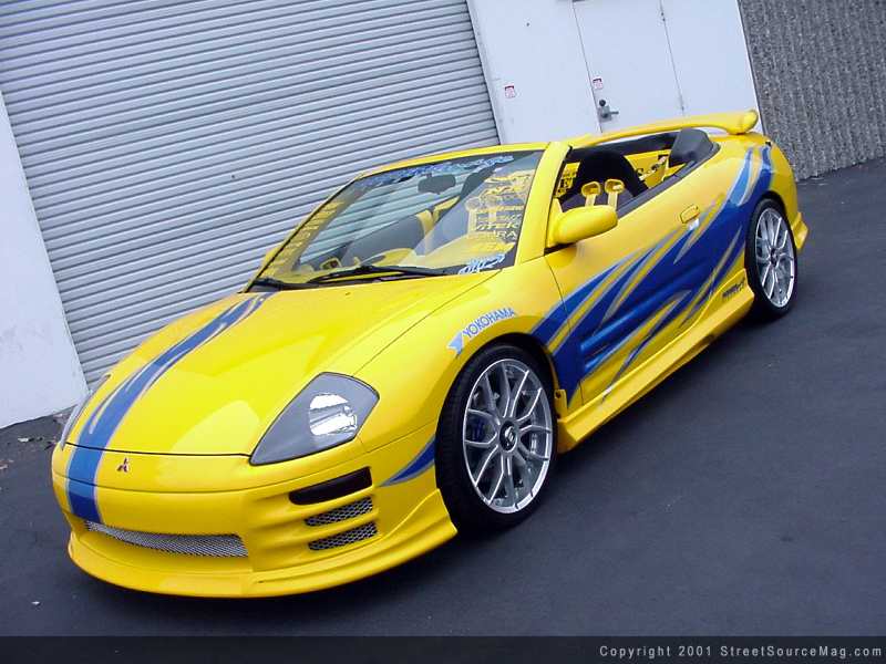 Beneath the Spyders newfound exterior appearance, you will find the next step in the transformation of this Mitsubishi. Robert would ditch all of the stock suspension items only to replace them with some of a more high performance matter. A set of Koni struts would provide a smooth ride while surrounded by a set of Ground Control adjustable coil overs for the low stance. The coil overs can be found equipped with Eibach springs on all four corners. For added performance, the stock bushings where replaced with those provided by Energy Suspension. With the new suspension, it would only make sense to upgrade the stock binders. Ditching the factory calipers would leave room for the slotted and cross-drilled AEM rotors. The front would house 13 ½ inch rotors while the back utilized 11 ½ for ultimate stopping abilities.