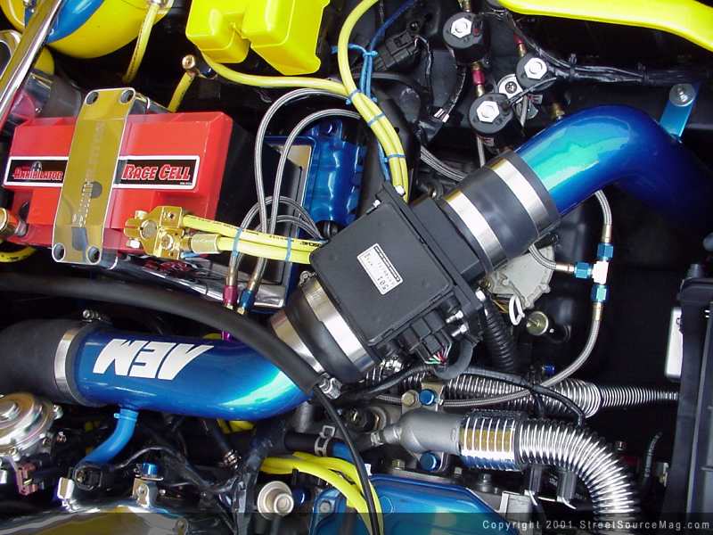 Next the engine would be in need of some help breathing. To work these needs you can find an AEM cold air intake bolted up along with a 3-inch Bosal Comelin exhaust. With the engine breathing properly, some fuel would be needed pushed through the system when needed. Robert then decided to install a Nitrous Express Dual stage system for a quick 100 shot for needed passing.