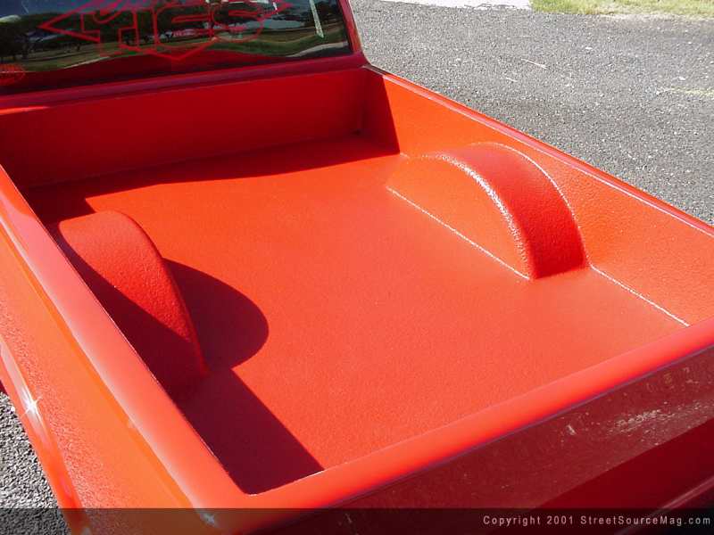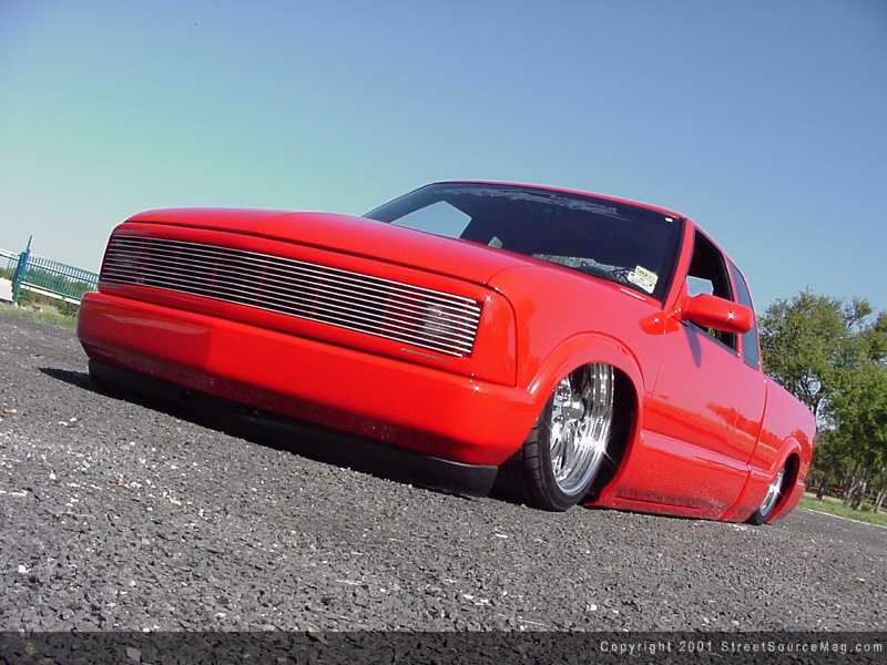 Now with the S-10 laying body evenly on the pavement, it was a must to start working the exterior to complement the low stance. Performing the exterior modifications that would help this mini stand out would be Pats Auto of Houston, Texas. While there many modifications to the body would be worked and smoothed. Starting in the rear, a custom roll pan would be molded to the bed. Keeping with the smooth look, the taillights would be ditched and LED's would take their place into the newfound roll pan. After the tailgate being welded shut completing the ass end, it was time to head to the front. On the way forward, the bodylines would all be smoothed out and the gas filler door would be shaved and relocated into the bed.