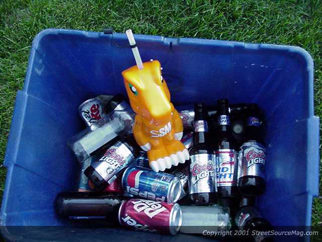 With a pool in sight, we decided to strap Jack in a life vest and put him out in the water to soak up some rays. After seeing some honey's come out of the house, Jack decided he wanted out. Here is the head honcho of Visions with Jack and I putting down a few cold ones. After a long day of drinking and getting his pimp on, Jack passed out. Here we captured a "Kodak" moment with Jack in the can bucket.