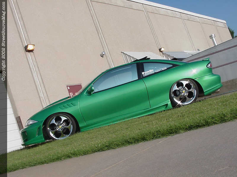 Its very common these days that a woman is found building rides phatter then most guys. In fact, its becoming common to see rides throughout magazines that are owned and built by these very women. For most guys this would be their dream girl, but for others it becomes a high dollar competition as to not get beat out of that first place trophy. Well back in June of 1999 Angie Thanscheidt would start her tour to the top of her class. With originally putting down $10, 000 to purchase her 1999 Chevy Cavalier, Angie was ready to take her customizing knowledge and put it to good use. 2 years later and about 15 grand more put into this smooth ride and Angie had her Cav into show shape. After all, the reason for her building this ride is simple Stock sucks! Well okay, either that or to out do her husband and show everyone that girls can build nice rides too.