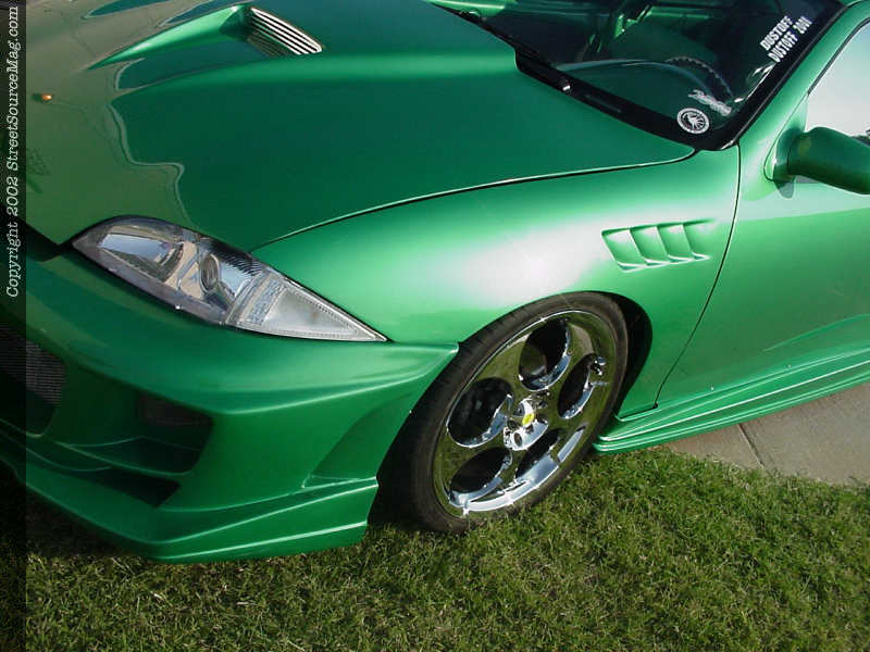 The door handles would be shaved along with the antenna, which was relocated into another location. The 3rd brake light would be shaved along with a custom door and relocated gas filler.   For the hot summer days Angie decided to have a sliding ragtop installed allowing the sunlight to shine through. A set of APC projector beam headlights along with Altezza style clear taillights where installed to finish things off. Ronald Remsey of Collinsville, OK is responsible for the bodywork.