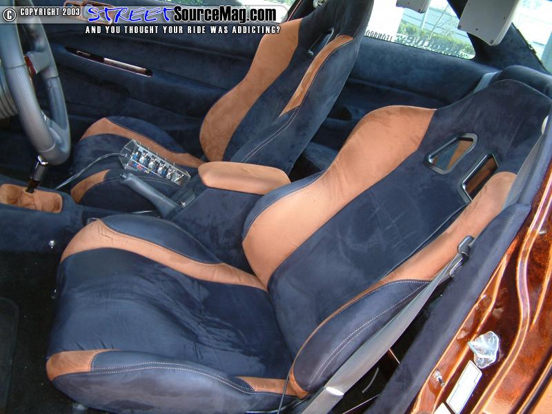 Leaving himself with nothing more then high expectations, Kenny's interior needs would be accomplished by Kreative Auto Interior of Rosemead, CA. While in their hands, the crew would first wrap the dash in black suede with painted trim to help match the exterior.