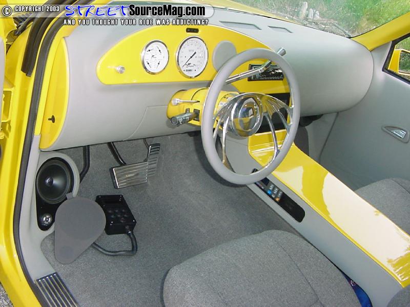 For seats Kyle grabbed the first pair of "junk-yard specials" he could find and had Greg's upholstery stitch them up in gray tweed. Along with the seats and dash Greg smoothed out the door panels and headliner and wrapped them in matching vinyl.