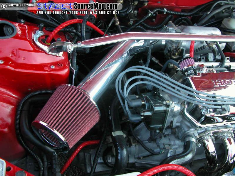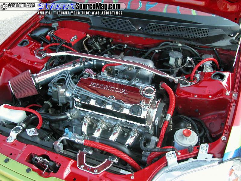 Finally, Steven turned his attention to the engine bay. Here he chromed the A/C condenser brackets, the hood hinges, the power steering mount, and the master brake cylinder. He used all polished stainless steel nuts and bolts throughout the engine bay, upgraded to a chrome air intake and filter, rerouted most of the wiring for a cleaner look, and added a chrome strut bar for stability. He also worked in a DC Sports header, which leads to a chrome down pipe and an APEXI muffler.