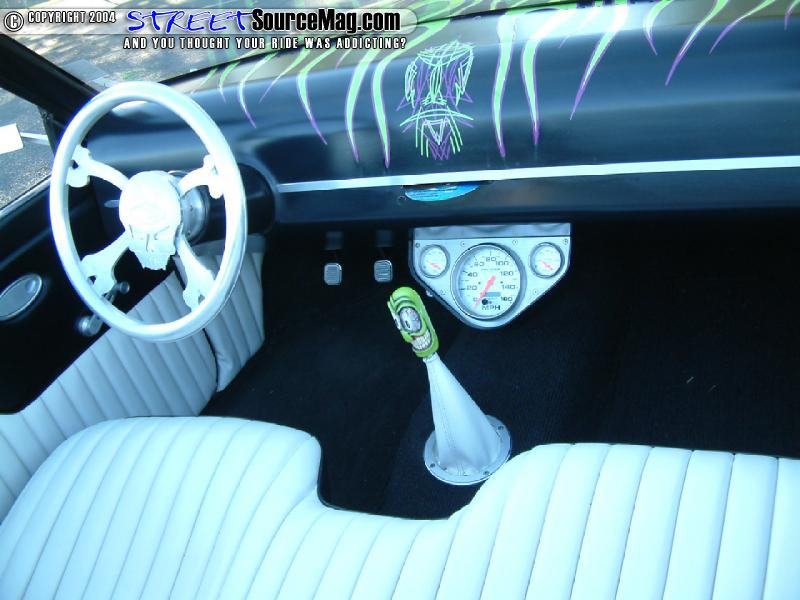 With the exterior complete and the roof now off, Chris would need to continue the old school roadster appearance from the inside. For starters the dash would be smoothed out, painted and housing a custom gauge cluster utilizing Autometer gauges. Next Chris would have Holcomb’s Upholstery from Aberdeen, WA handle the doors, and seats receiving a killer tuck and roll utilizing black and white marine vinyl.
