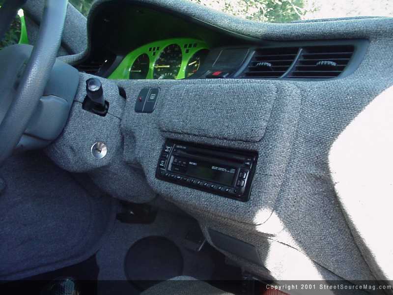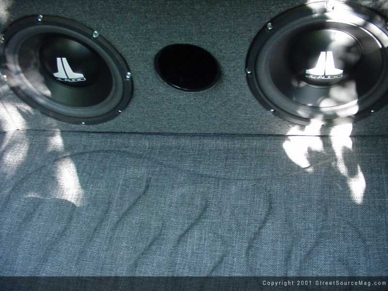 The decision of a Clarion pro audio CD player along with a Clarion pro audio EQ utilized the volume and clarity to the Soundstream mids and tweets. Rockford Fosgate amplifiers provided the power to the JL Audio 10W6’s. In the center council, Jason decided to locate the fuse block for extra eye candy for the judges.  | Even the trunk and stereo was wrapped and flamed with grey tweed. That is what makes or breaks the average show vehicle, that’s why Jason’s civic isn’t just average. |