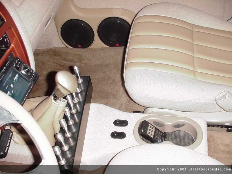 | With Eric’s custom centor console, he has the window controls at his finger-tips and a place to set the fun things like controls to the hydro’s! |