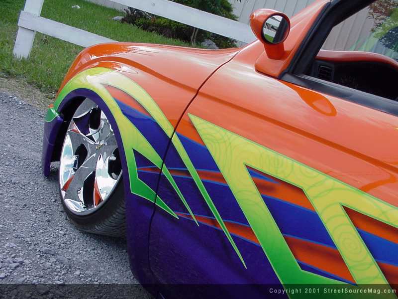Spicing up the looks just a tad, Dustin then added some House of Color Violet Pearl and lime time green in graphic form.   Bringing together some finishing touches, Jenny Carr used green Lime Time paint for the pin striping needs.