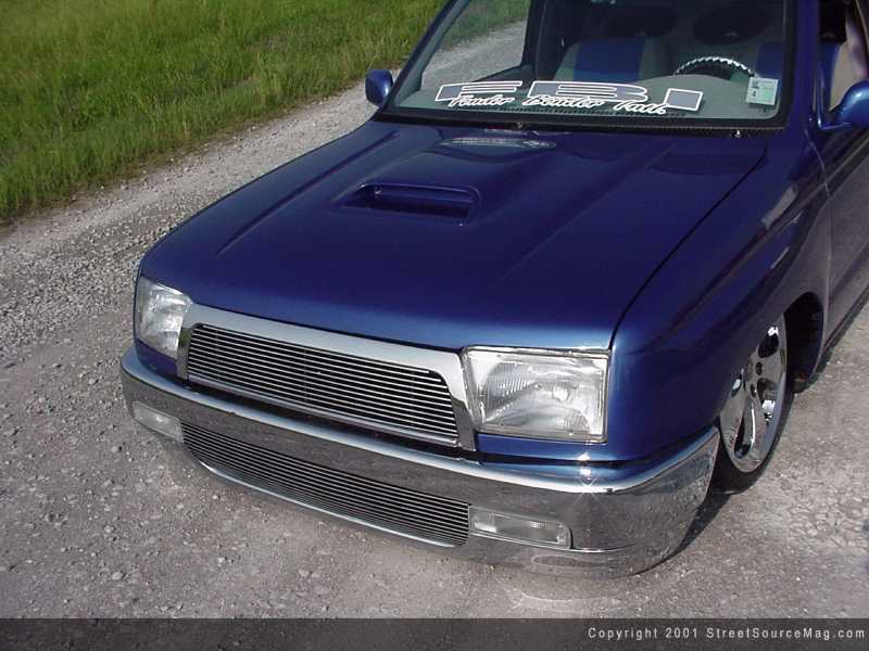 With his truck coming along , Brandt next turned to his fellow Negative Camber member Chris Bostick for some necessary parts to set the Tacoma apart from the rest. Brandy purchased a 2000 Toyota 4 Runner hood and fenders from Chris. Next Brandt purchased the headlights and grille from a 1997 4 Runner and contacted FBI to build some billet inserts to give it more of a modern look. FBI was also given the task of chroming and adding billet to the 1995 4 Runner front bumper and valance that would adorn Brandt's Tacoma.  Brandt then took the truck back to BYC where Mike and the boys got back to work. Mike and his crew shaved the corner lamps and installed the new fenders, then had to install all of the new front parts and pieces, which was no easy task by any means.