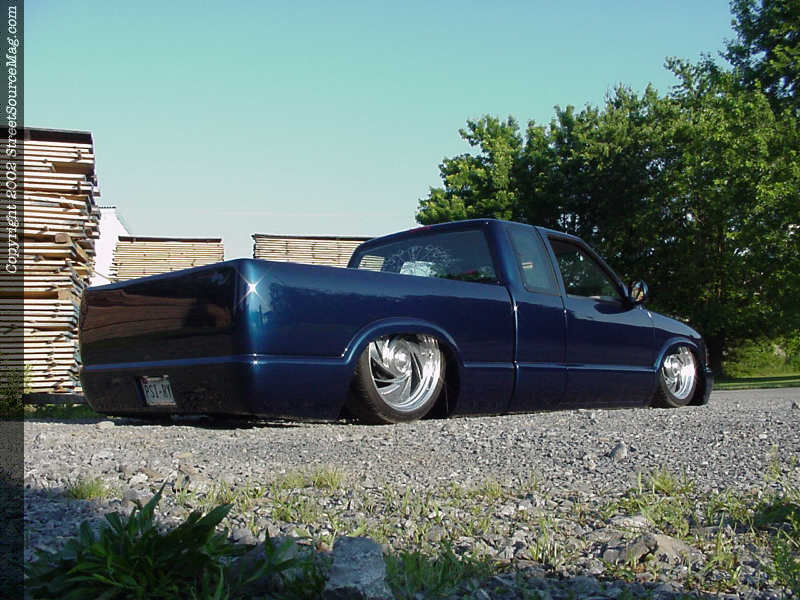 4 months after purchase the truck, John's visions would become blurred on many occasions. At Booger Bash in October of 1999 it was nearly totaled by a hit and run, and then it was yet rear ended again along with the front being squashed once I guess so it didn't feel left out. Knowing that he needed the low low to gain respect from his fellow Minitruckers, John decided to drop his S-10 off to the guys at Flawless Fabrications of Bethleham, GA. While in their hands many modifications would be performed to get the ride height down were it needed to be.