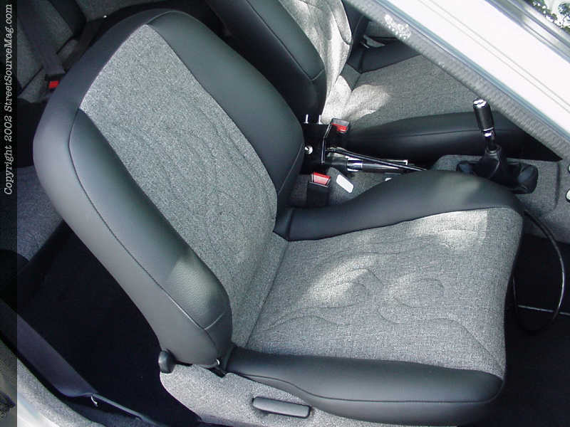 All other panels found through out the interior would be also be wrapped in tweed. The seats would then be stitched in black vinyl and tweed along with a set of flames stitched into the middle.