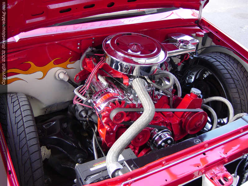 Under the hood, you will find a host of chromed and painted goodies that earns Les extra points on any judging sheet. Les painted the factory 2.8L V-6 block and took the time to chrome the alternator, intake manifold, pullies, air cleaner and valve covers.