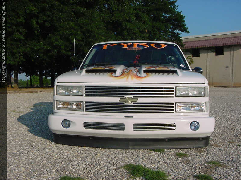 With all the bolt-ons in place Allan dropped his truck off at Moore Head Designs in Oklahoma City to have the doors shaved and the wild yellow and orange tribal flames layed out to perfection.
