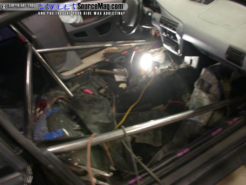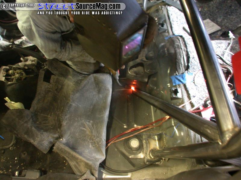 After you have checked everything and it is all placed and tacked where you want it, weld up all of the intersections. Be sure to weld all the way around the bars as it will not pass tech inspection at the track if you don't. It is also recommended that you do NOT grind the welds at all. This shows the tech inspector the quality of the welds and in many cases make for a stronger weld.Here you can see some photos of the completed cage. Soon we will be ripping the interior back out to paint the cage (That tech article will be in an upcoming issue of Import Street Source).  Still to this day, the roll cage is one of my favorite modifications we have done to the car so far. The car handles much better and feels far more safe (not to mention looks a lot better). The cage was originally intended to go into the car AFTER the turbo is installed but we have been waiting over 7 months for the turbo kit to arrive from ITSTurbo.net. When they get it to us we will show you how it is installed as well! You can keep an eye on Project Z at http://www.streetsourcemag.com/projectz/