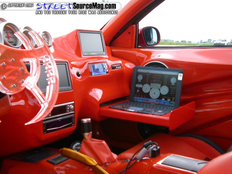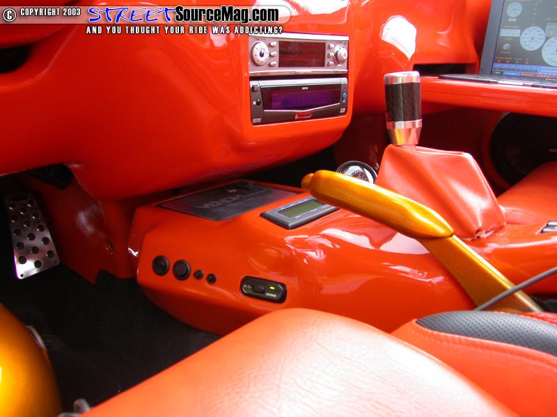 To tie things in the door panels would receive the same treatment along with other interior panels and a custom built headliner. Once the fiberglass work was complete, it would then be painted to match the exterior. To bring more bling to the interior, M&B would install a set of custom polished aluminum race pedals, custom shifter knob and boot.