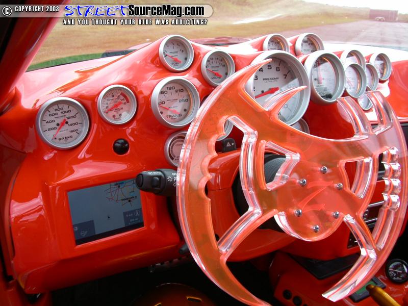 Having to live up to the exterior touch, M&B Enterprises would next tackle the interior. Starting with the dash, the stock one would be tossed and a complete custom dash built housing many Auto Meter gauges for every purpose.